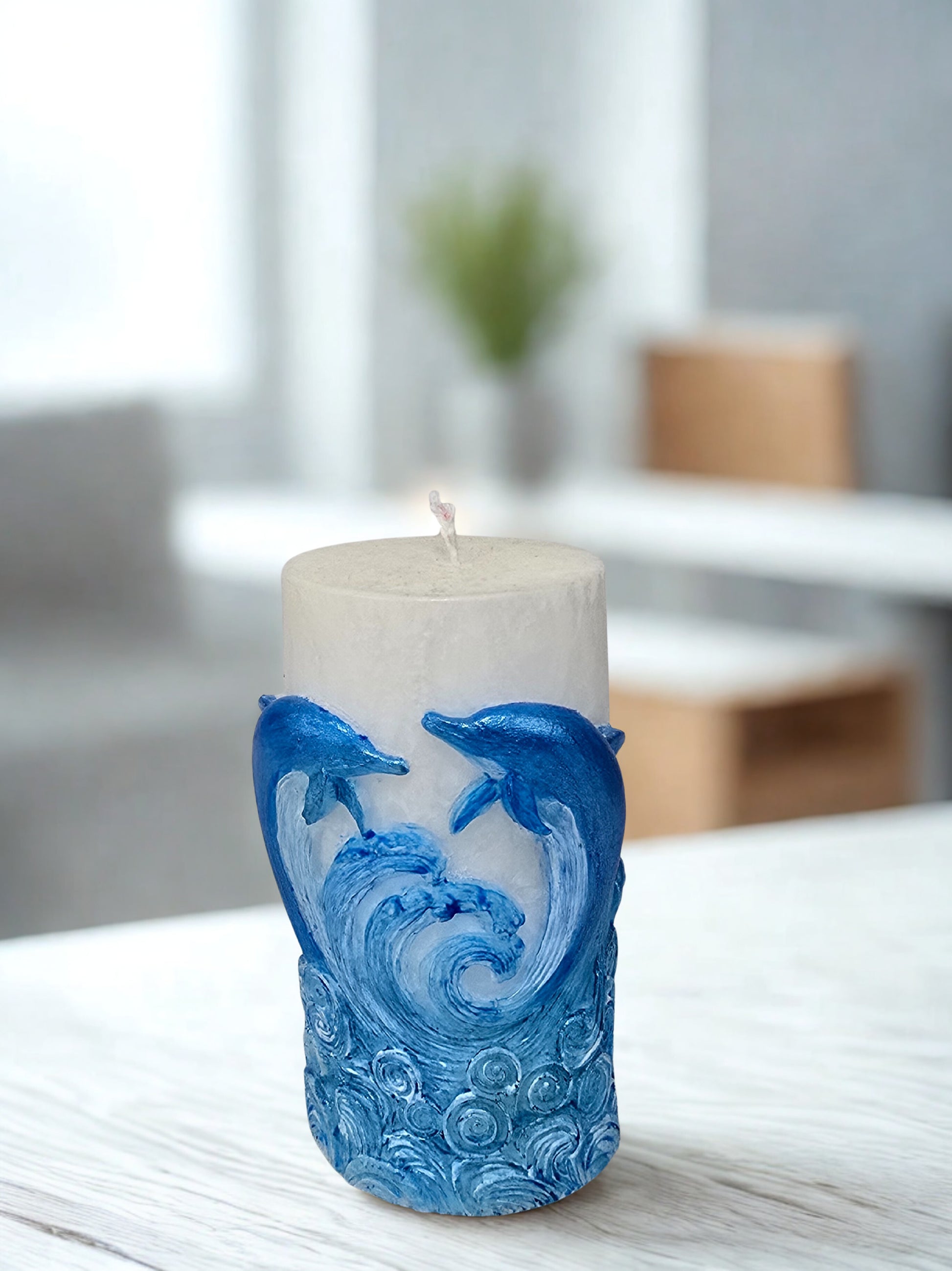 Plonjează într-o stare de calm și visare cu lumânarea noastră Dansul Delfinilor, inspirată de armonia mării și eleganța acestor creaturi marine. Realizată manual din ceară naturală, această piesă este perfectă pentru a aduce o notă de rafinament și relaxare în orice încăpere.